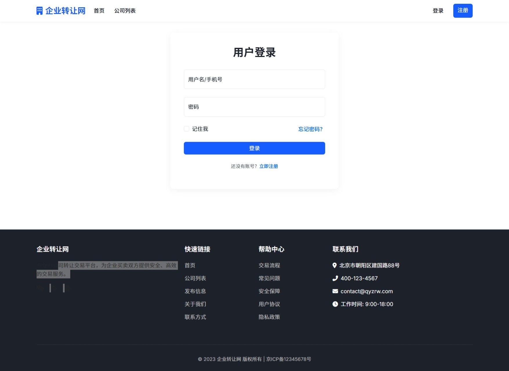 入门客公司转让平台1.0HTML网站模板