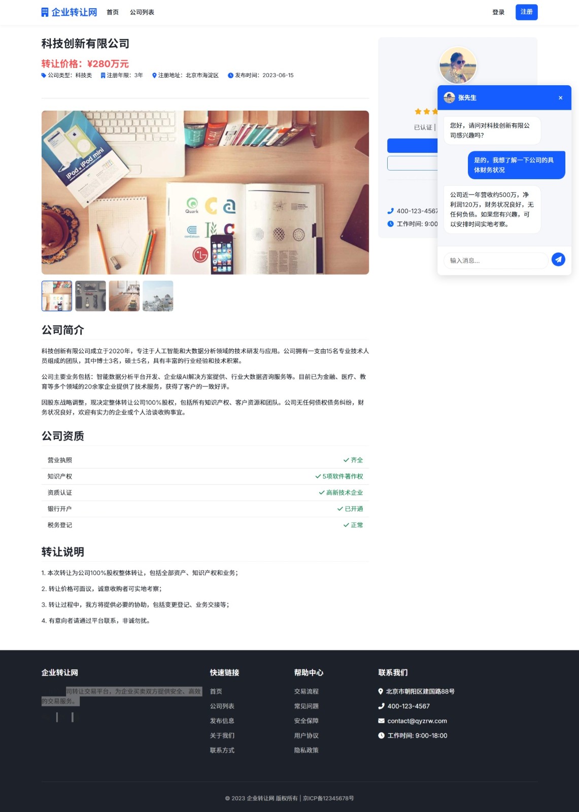 公司详情页,含在线咨询功能