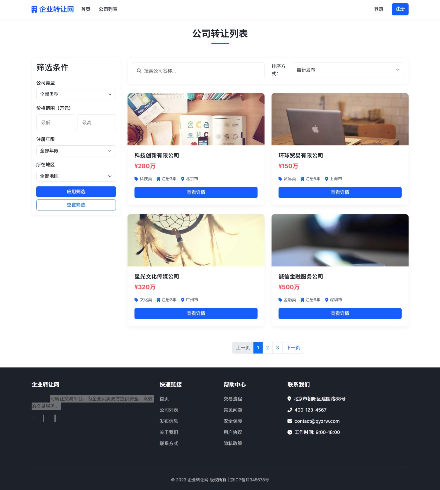 已发布公司转让信息列表页